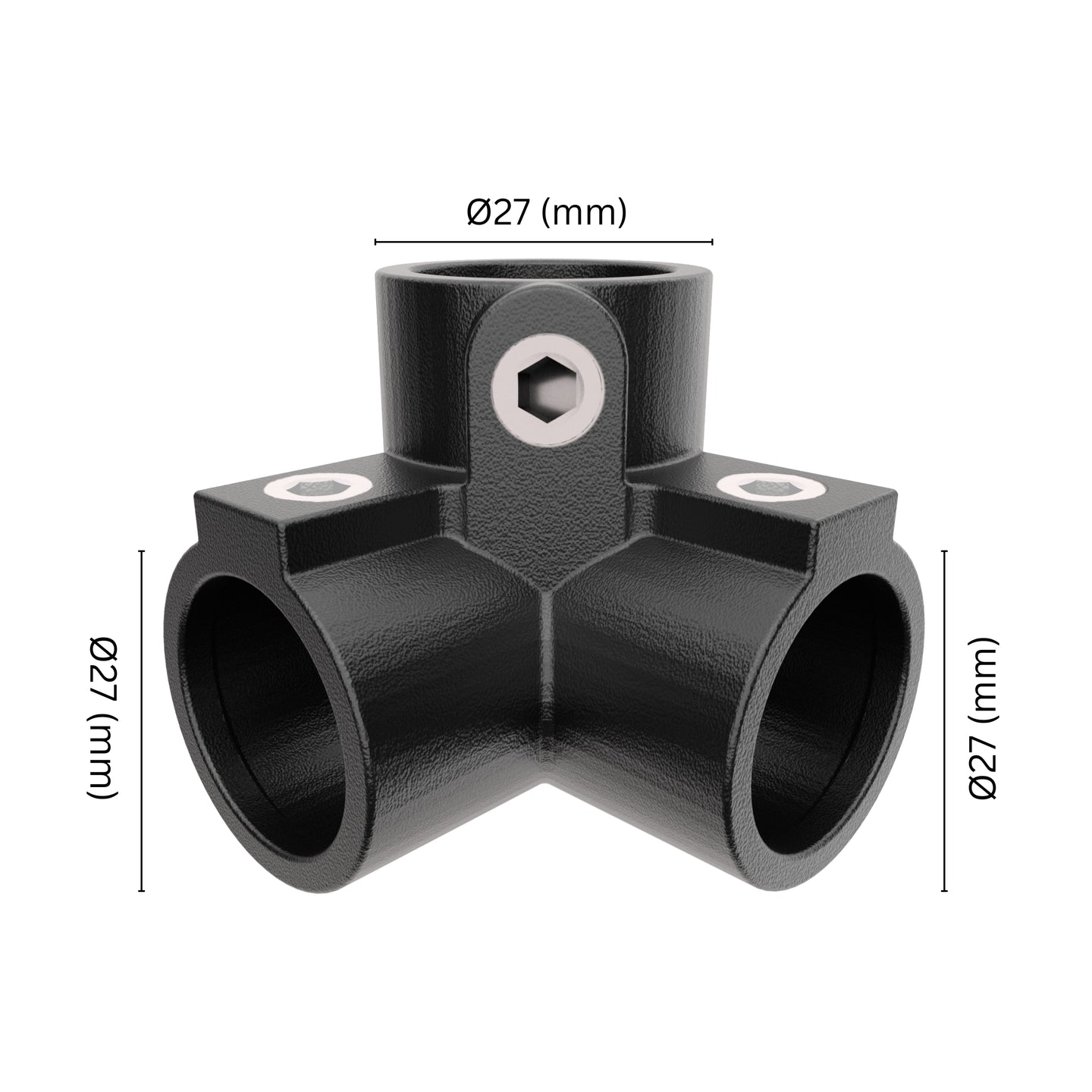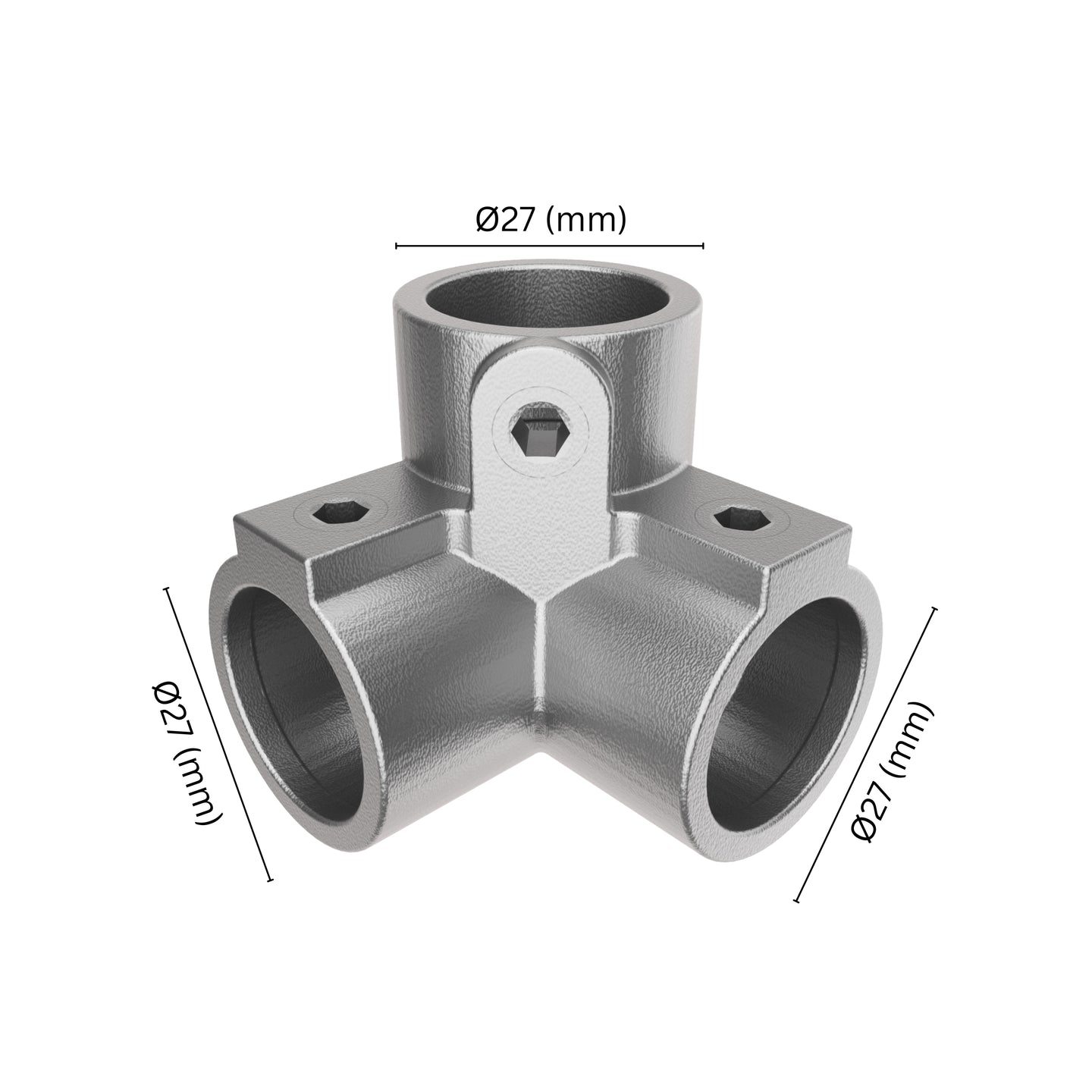Technical Details - Size: 27 mm - Weight: 0.375 kg - Material: Heavy-duty SG cast iron - Colour: Silver - Finish: Hot-dip galvanized - Package Includes: 1 x 3 Way Corner Elbow Connector Pipe Fitting 27 mm