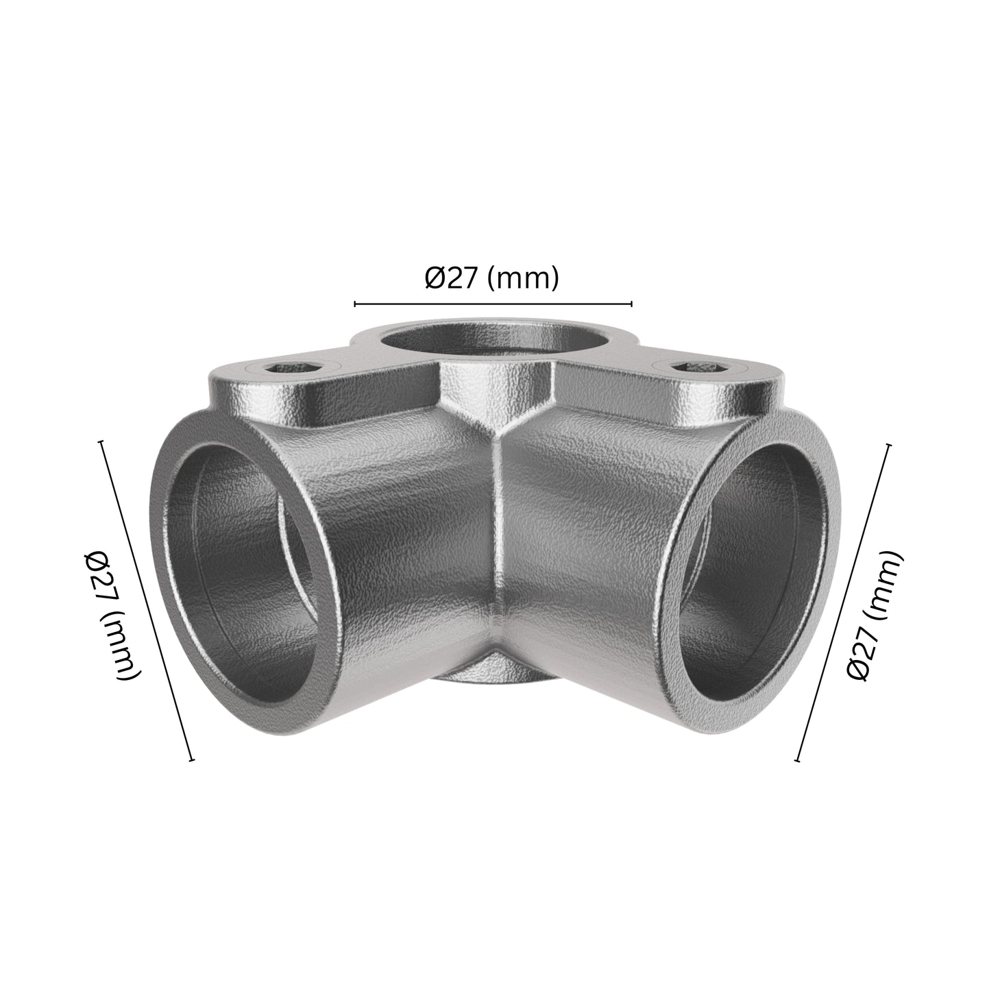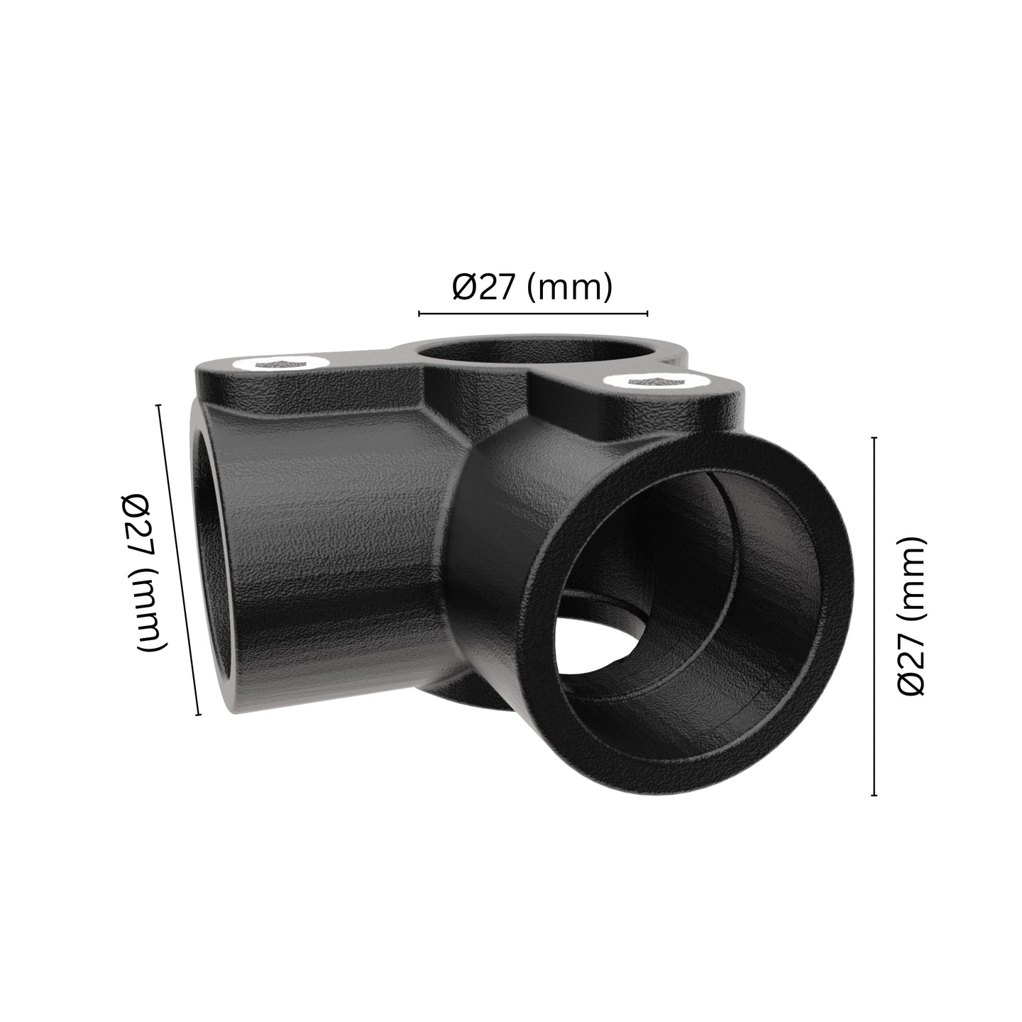 Technical Details - Size: 27mm - Weight: 0.277 kg - Material: Heavy-duty SG cast iron - Colour: Black - Finish: Hot-dip Galvanized + Black Powder Coated - Package Includes: 1 x Scaffolding Tube 3 Way Mid Rail Corner Clamp 27 mm
