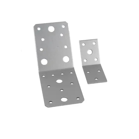 PRODUCT - Reinforced angle brackets with ribbing are perfect for various timber construction applications, connecting timber elements. This version serves as a corner connector with legs angled at 135°.