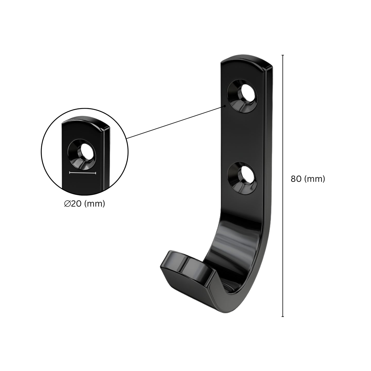 Technical Data - Size: 80mm - Shape: J - Material: Carbon steel - Finish: Black Powder Coated - Predrilled Holes - 2
