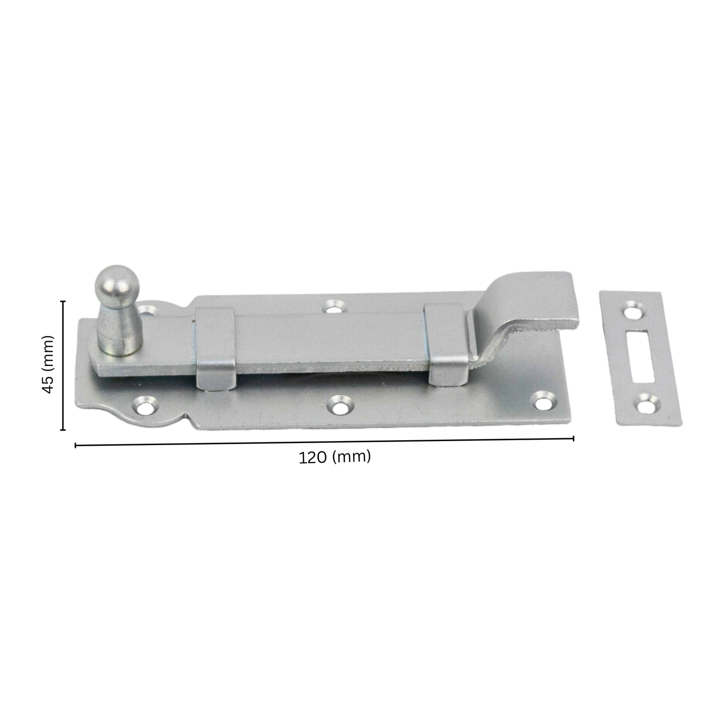 TECHNICAL DATA - Total length of the bolt: 100 mm - Bolt stroke: 25 mm - Bolt width: 16 mm - Base plate length: 100 mm - Base plate width: 45 mm - Base plate holes: 6 holes Ø 5 mm - Base plate material thickness: 1.5 mm - Strike plate length: 41 mm - Strike plate width: 22 mm - Strike plate material thickness: 1.5 mm - Strike plate holes: 2 holes Ø 5 mm - Material: steel - Finish: galvanized - Product type: bolt