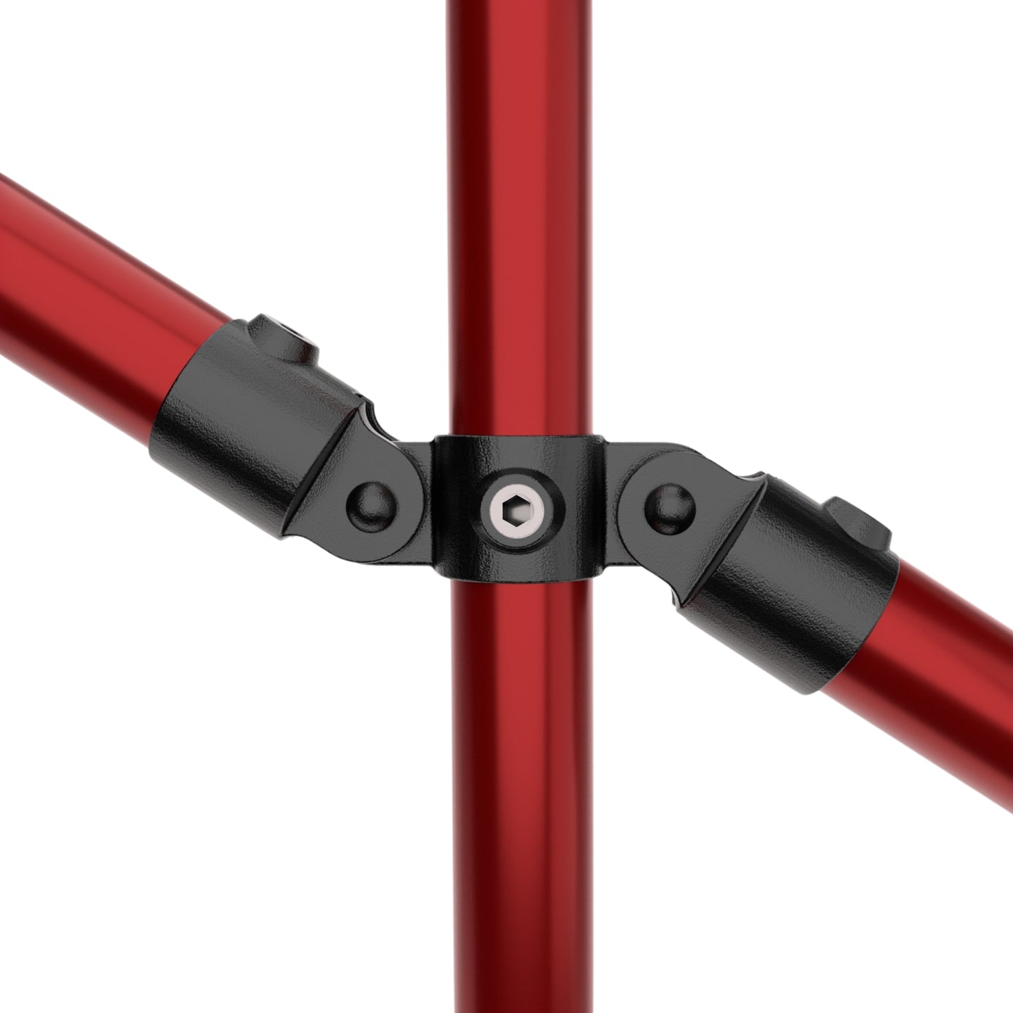 Flexible Joint for Angled Connections – Double swivel clamp creates a flexible joint for structures where fixed angles won’t work. This is useful for sloping handrails, bracing struts, angled tube connections and custom structures.