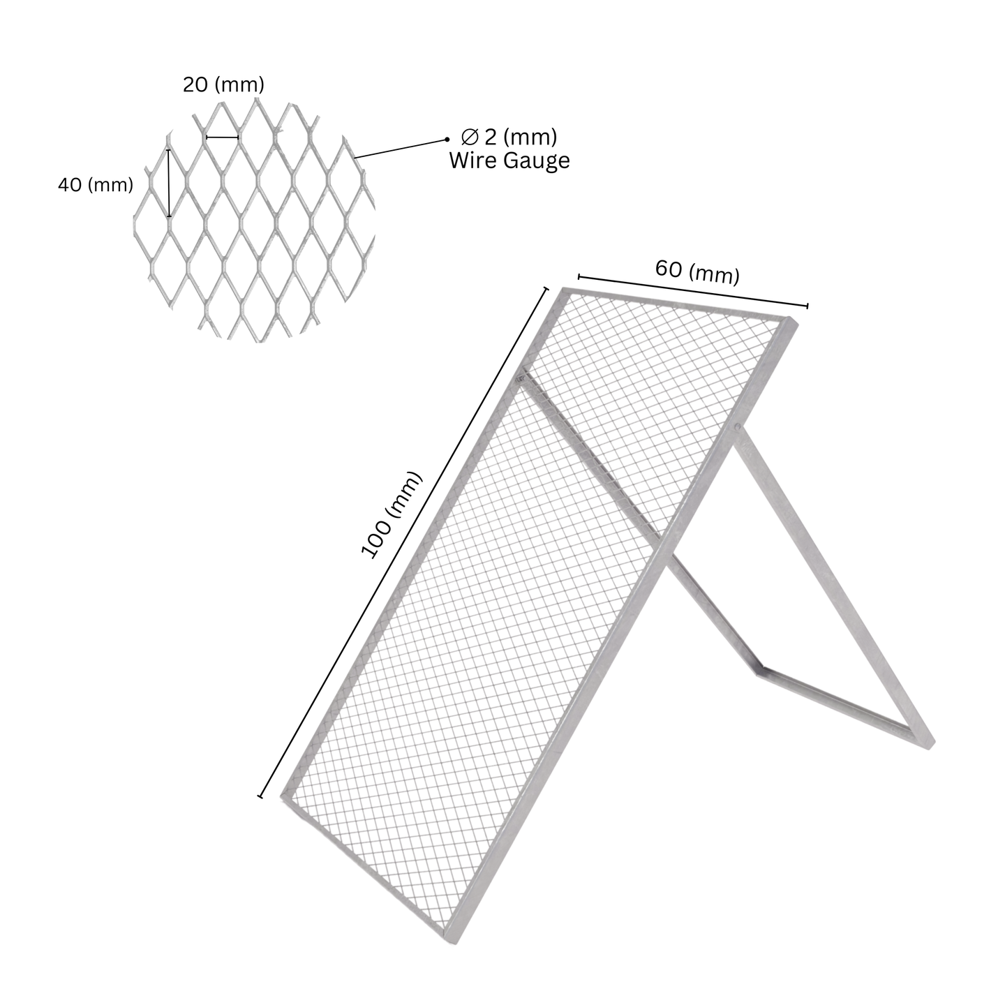 TECHNICAL DATA - The compost sifter measures 100 x 60 cm and is fire-galvanized, providing excellent protection from weather conditions. This ensures durability and consistent performance for sifting dirt, rocks, and sand, whether used for composting or general garden soil preparation.