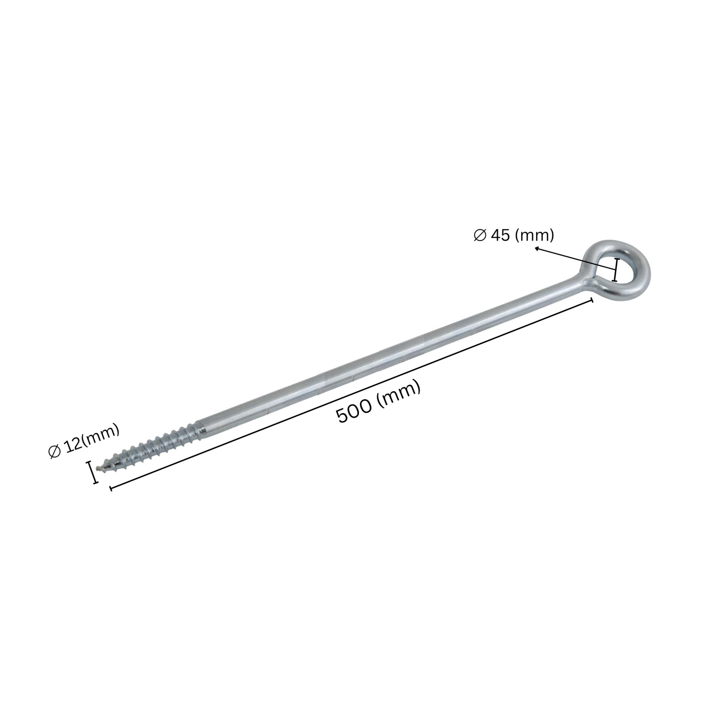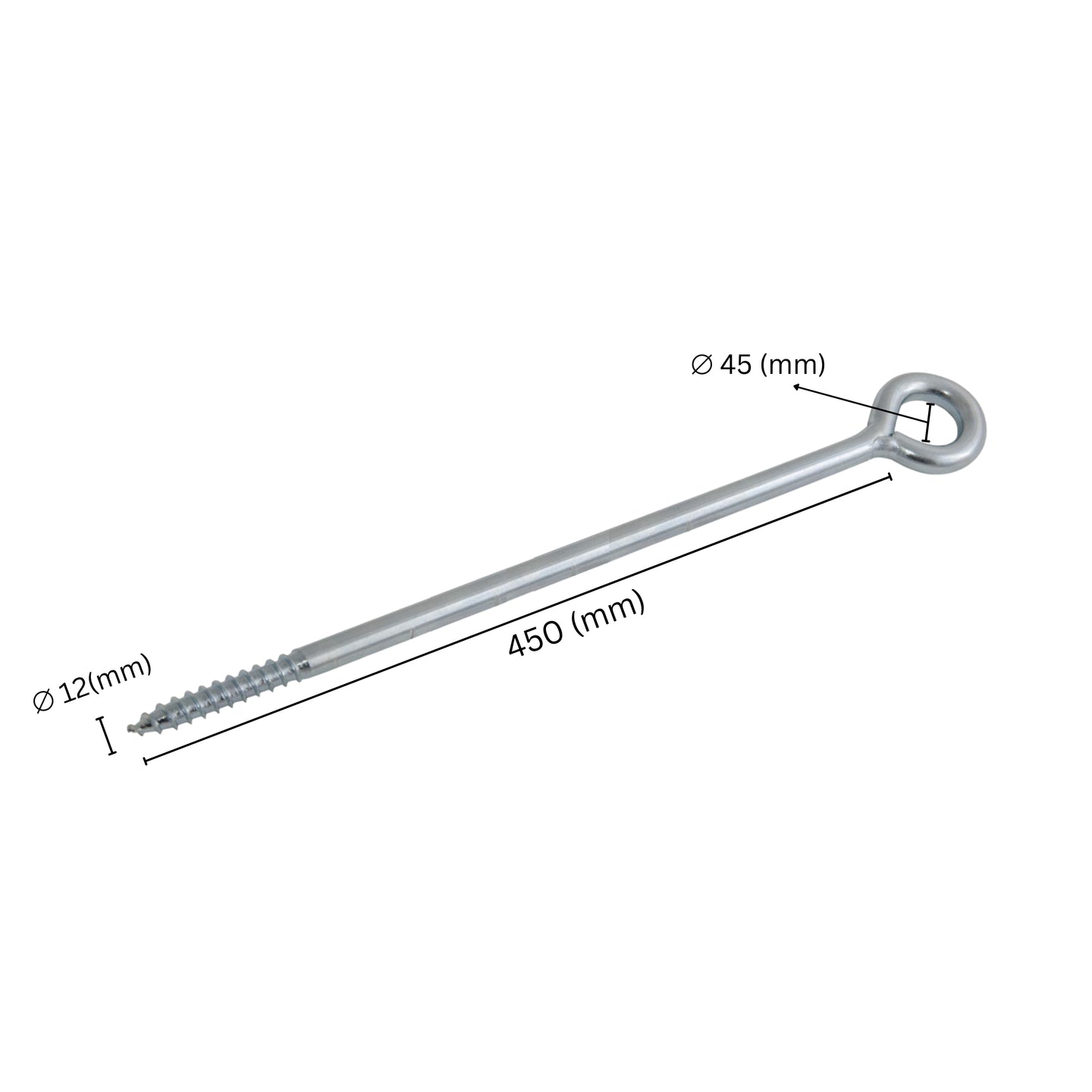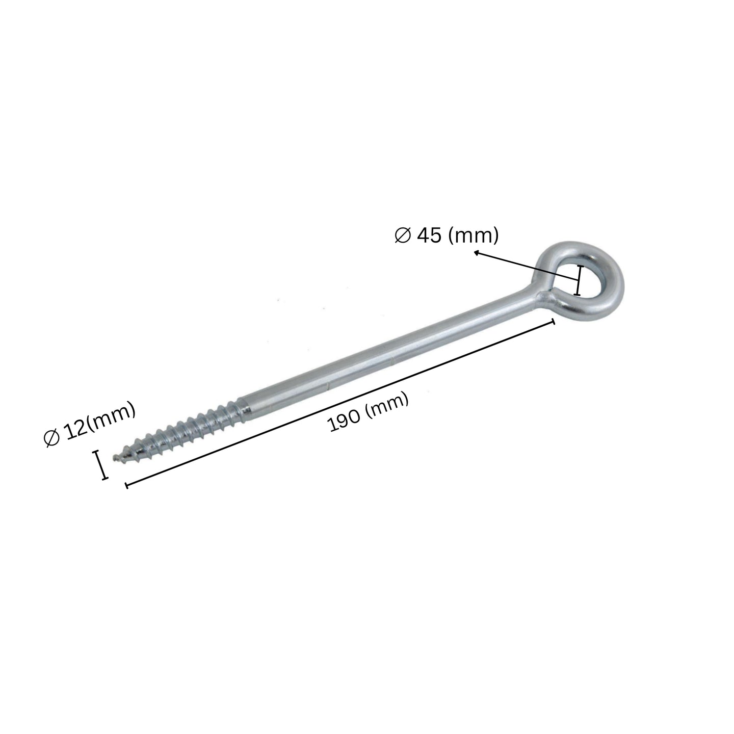 USABILITY – The shaft diameter is 12 mm, compatible with 14 mm dowels. The external ring diameter is 45 mm, providing ample space for attachments. Made from galvanized steel, these eyelet screws offer durability and corrosion resistance.