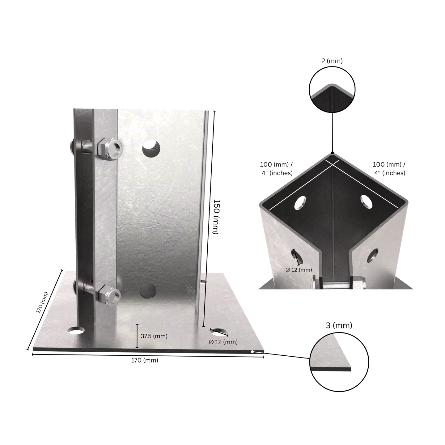 Easy Installation - The bottom plate has pre-drilled holes, making the post base bracket easy to fix onto concrete, wood, or other solid surfaces. The post sits inside the square socket of the support, lifting it off the ground to prevent rot and decay caused by moisture.