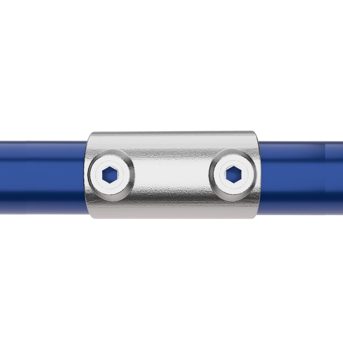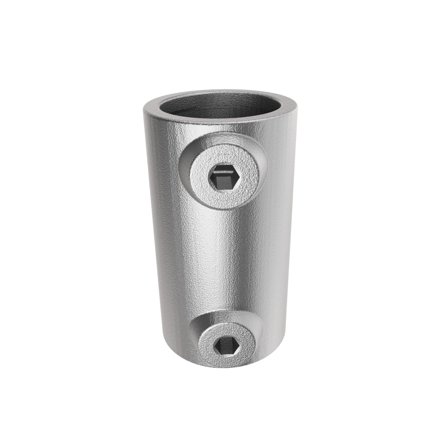 Inline Tube Connector for Strong Joints - Inline external tube connector joins two tubes of the same diameter in a straight line. This 42mm interclamp inline connector features two round sockets and is used to extend tubes in railings and other structural systems that require a continuous connection.