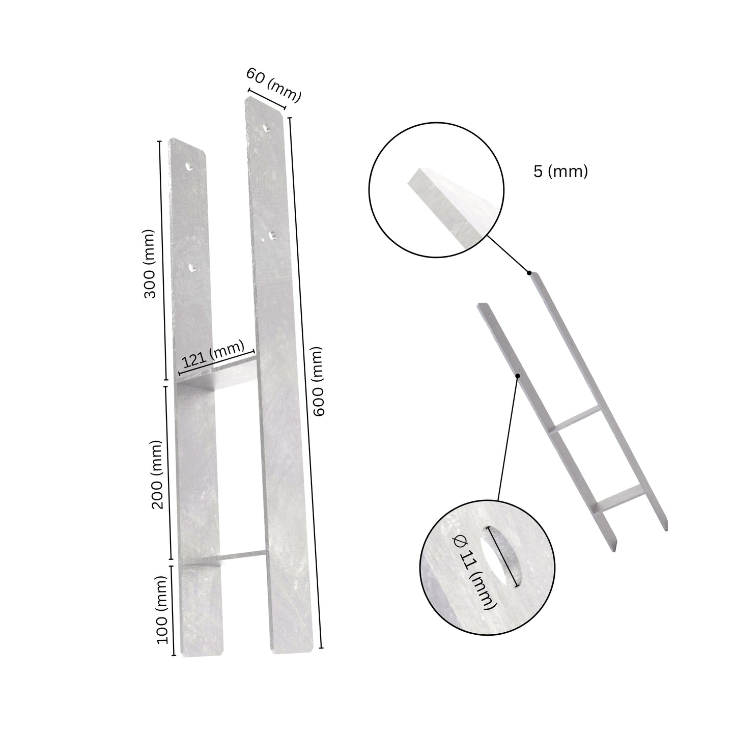 VERSATILITY - The H-Post Support anchor is 600 mm in length and made of 5 mm thick hot-dip galvanised steel, ensuring optimal protection from weather elements. The h post anchor provides durability and stability, making it ideal for long-term outdoor applications.
