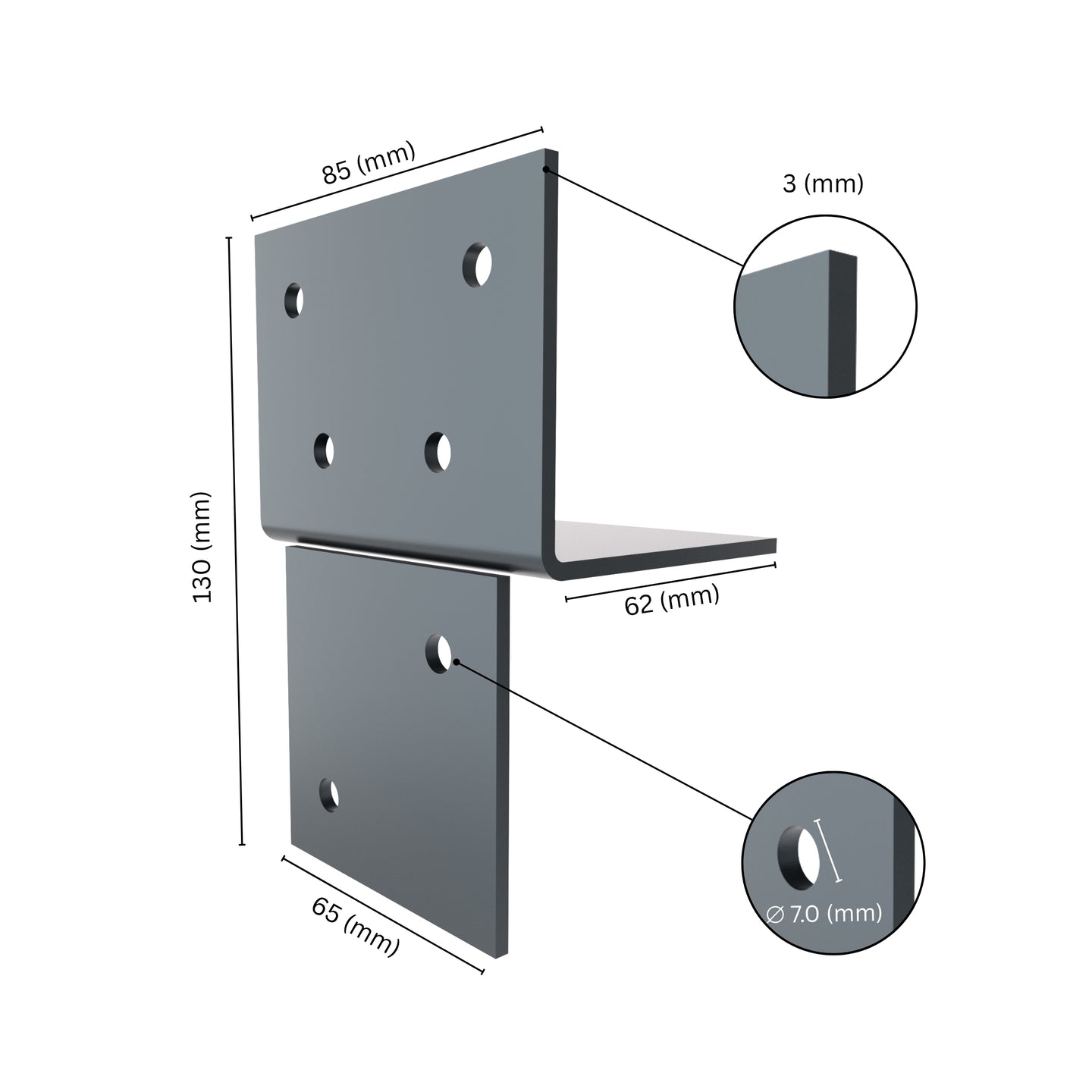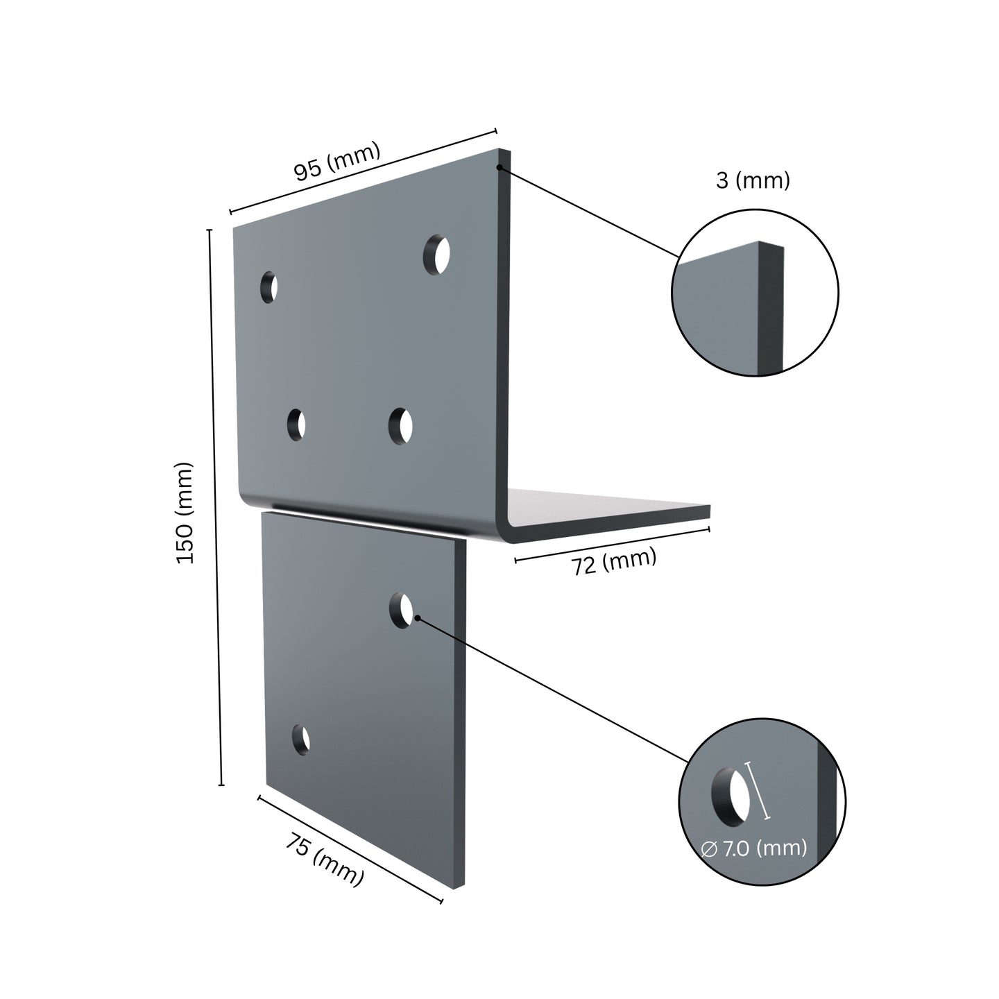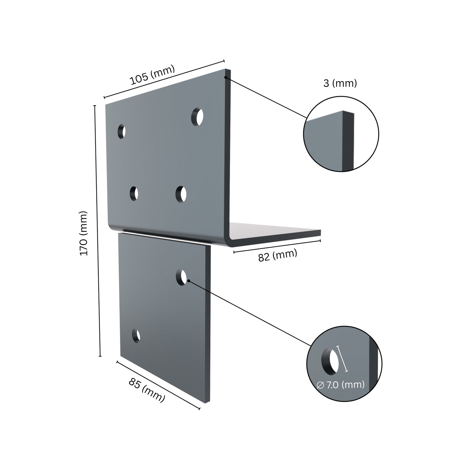 Heavy-Duty Steel with Anthracite Powder Coating - Due to the anthracite powder coating, our wood connection T-model won't rust, corrode, weaken or degrade over time. Anthracite powder coating provides a smooth, shiny finish, adds another barrier against moisture and UV damage. The durable coating resists scratches and maintains color. Unlike untreated steel, it does not require frequent replacements or maintenance. Suitable for industrial, commercial, and outdoor structures that require maximum reliability.