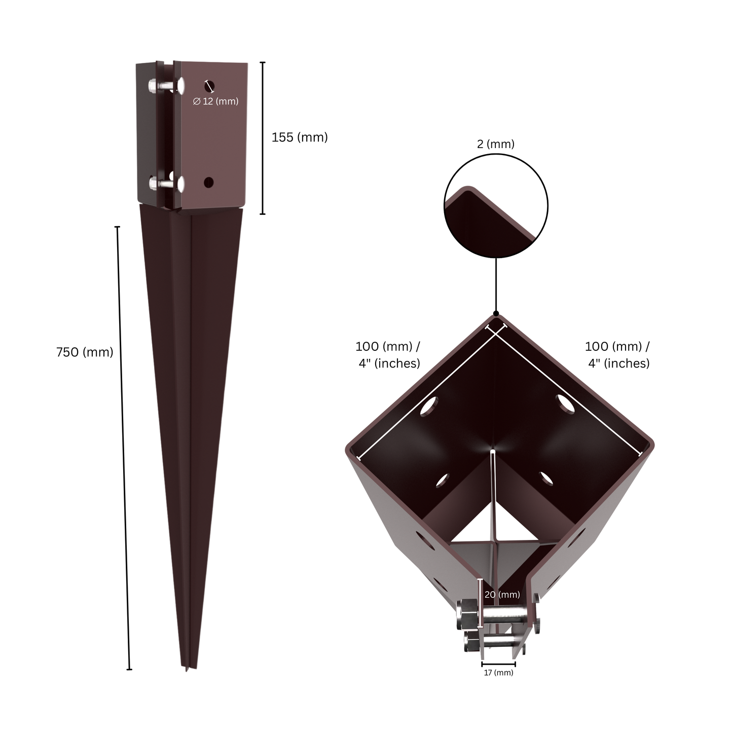 Strong Tapered Spike - The sharp, long-tapered spike easily drives into the ground, providing deep anchoring without the need for concrete. Post spikes for fences help keep the post stable, even in soft or uneven soil.