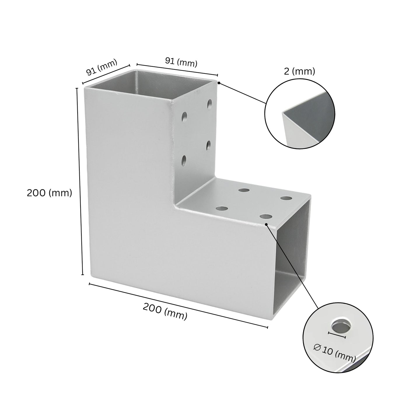 FEATURES - The posts are inserted into the L Shape Post Connector and secured with screws through the 8 pre-drilled holes, each with a diameter of 10 mm. These connectors provide a sturdy and reliable connection, ensuring the durability of your garden structures.