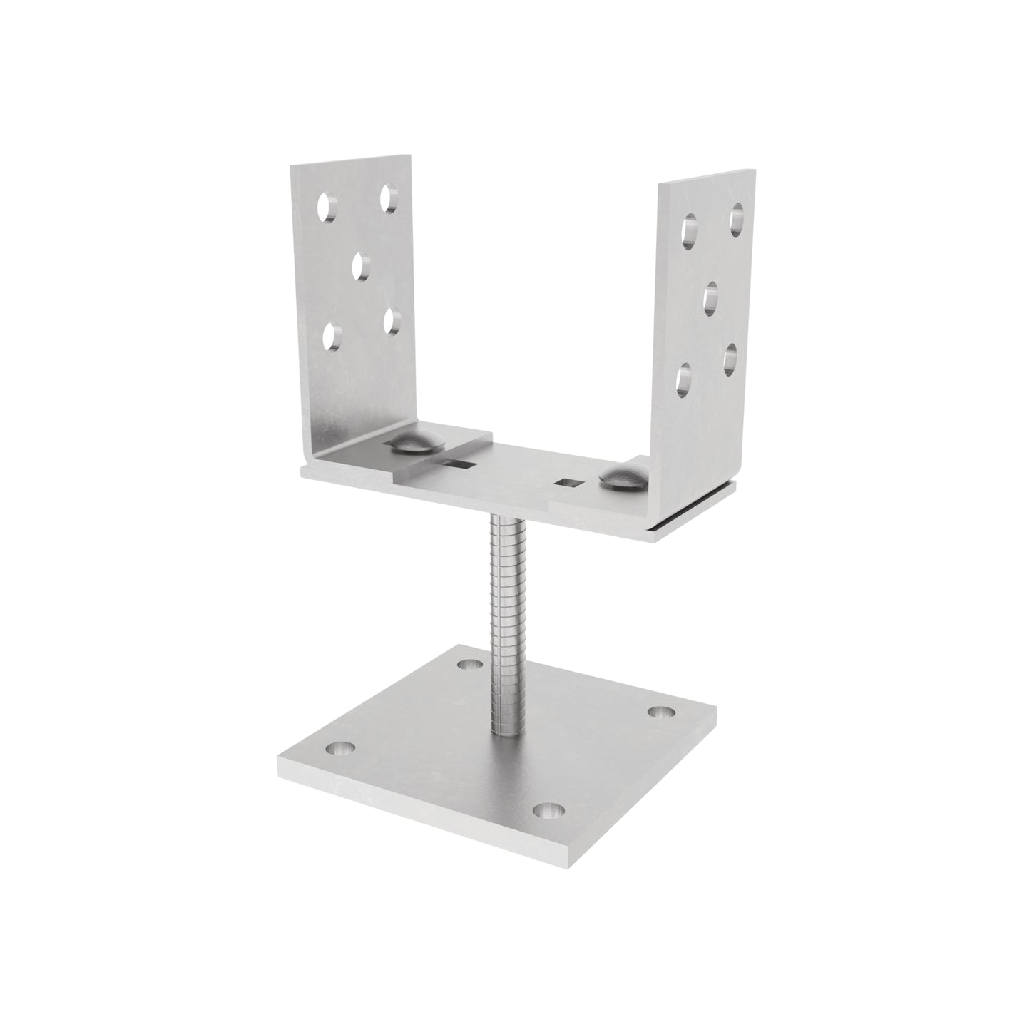 Adjustable Width U-Post Support - Adjustable U type post support with plate is used to attach wooden posts of various sizes and allows you to adjust the width. You can adjust the side brackets between 0-160mm and change the bracket position (inward or outward) to fit different beam sizes.