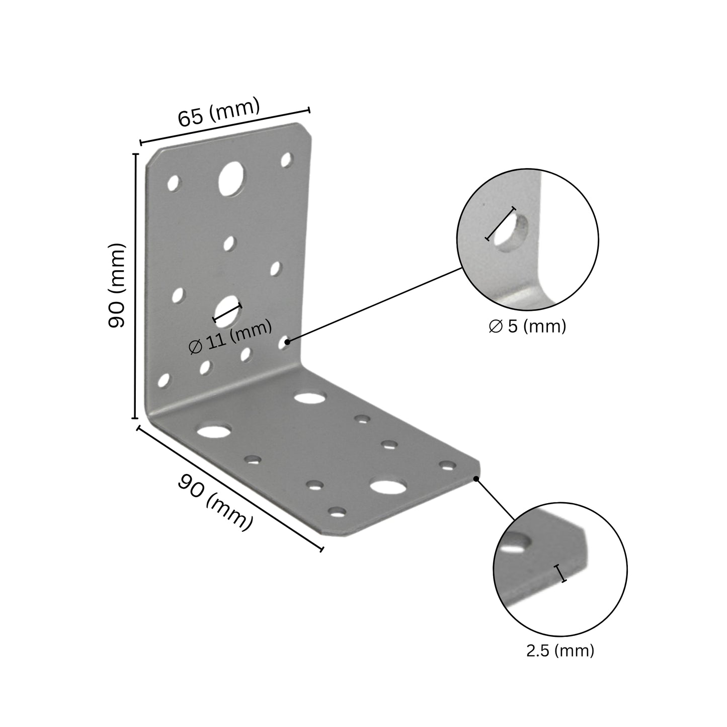 USABILITY - Made from Sendzimir galvanized steel, these Corner Braces are highly weather-resistant, suitable for both indoor and outdoor use. Material thicknesses range from 2.5 mm to 3 mm to meet diverse construction needs.