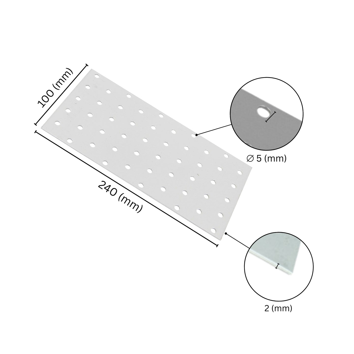USABILITY - Available in various sizes, our perforated plates have 21, 30, 36, 40, 50, 60, or 75 holes with a 5 mm diameter, ensuring easy installation. These joining plates are essential for secure fits in timber projects.