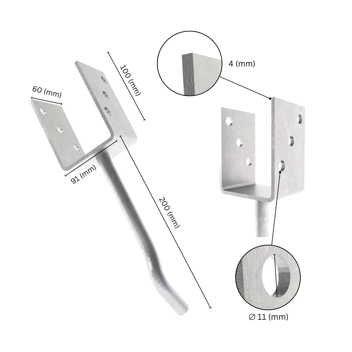 VERSATILITY - The fork is 100 mm high and made of 4 mm hot-dip galvanized steel. Our Fence Posts Support U Type are well protected against external weather conditions thanks to the hot-dip galvanization.